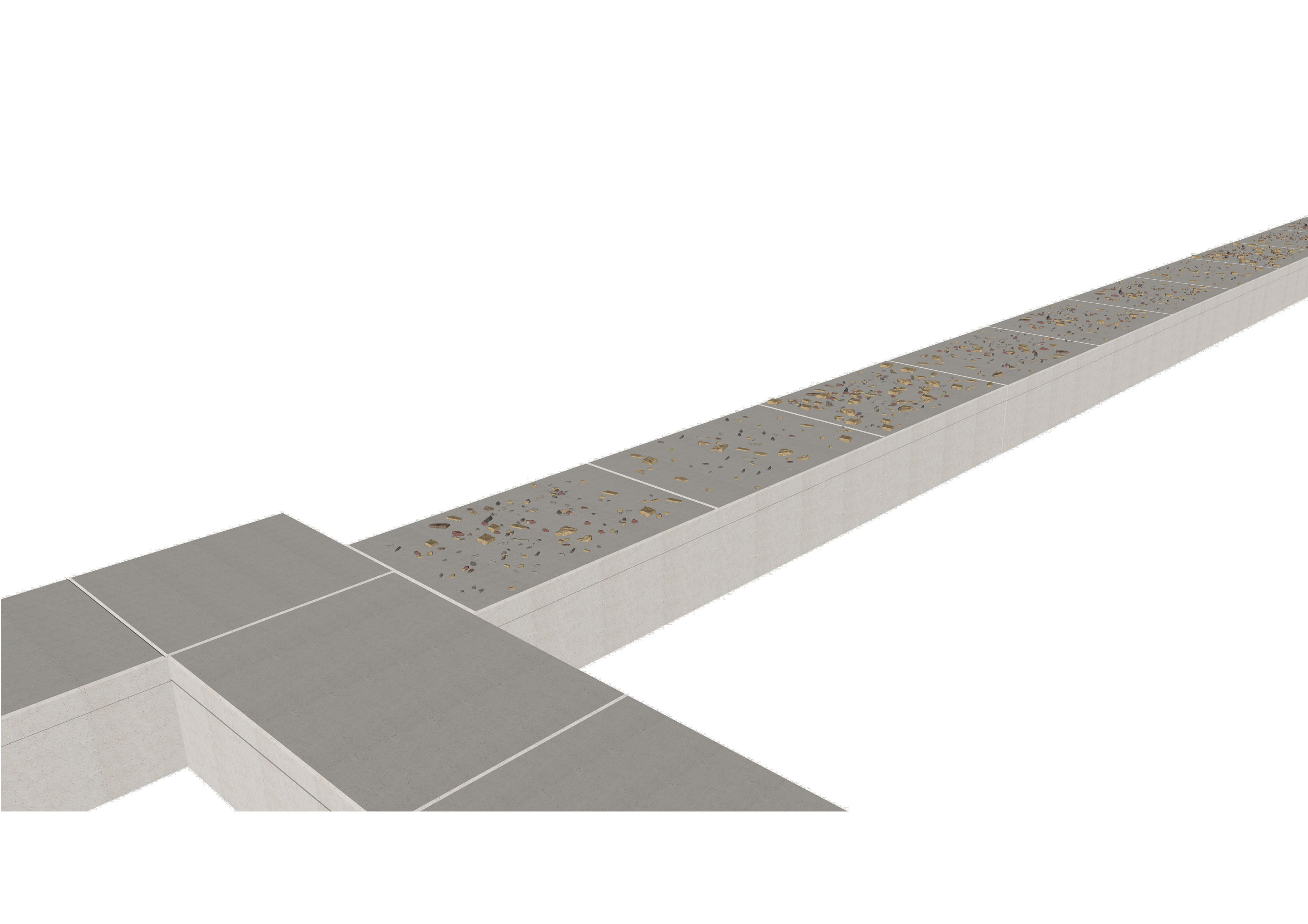De ombouw van de plint wordt afgesloten met deksels die met graphic concrete, straaltechnieken, 3D-printing en het toevoegen van restmateriaal van lokale vondsten worden bewerkt. Een groot deel van deze deksels legt een link naar specifieke plekken van opgravingen en veldkarteringen, zodat de bezoeker precies kan zien waar iets is gevonden.
