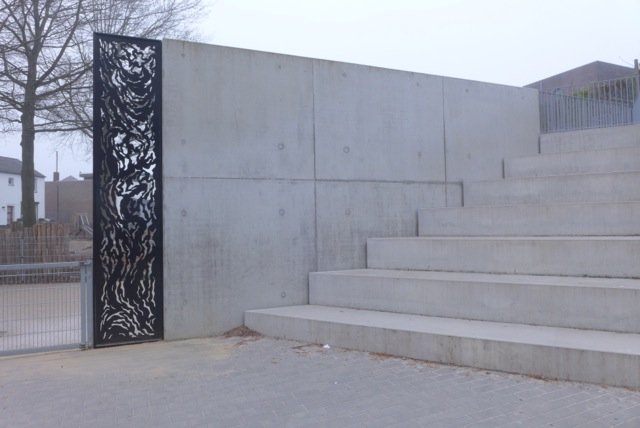 De Alice Vensters bestaat uit tien zwart-metalen panelen waarin organische patronen zijn uitgesneden. Als een ‘kantwerk’ zijn deze panelen in de architectuur opgenomen. Daarnaast zijn voor de entrees van beide scholen cortenstalen roosters ontworpen met een zelfde patroon. De organische en intuïtief gevormde patronen van De Alice Vensters staan in contrast tot de mathematische en rationele vormen van de architectuur. Gezamenlijk vormen ze een compleet belevingsbeeld.