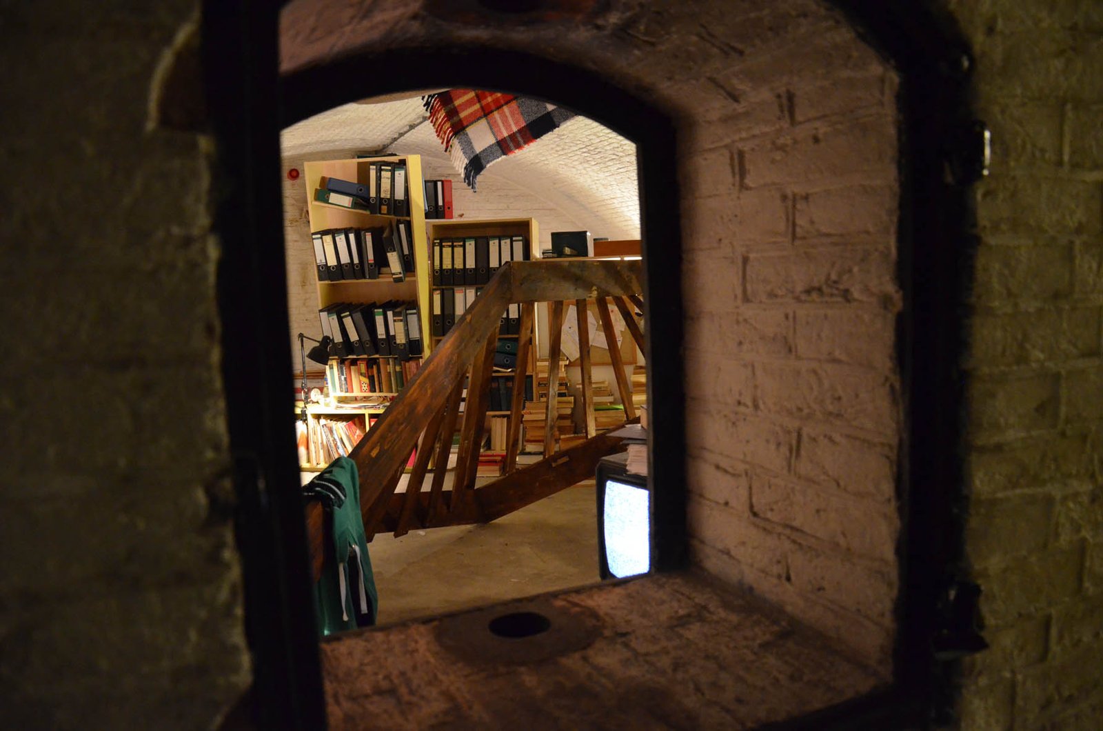 Via de raampjes in een bunkerkamer is het werk Een verstilde gedachte 2.0 van Leonard van Munster te zien. De met kasten, koffers, dossiers, meubels en andere inboedel volgestouwde ruimte is het overdrachtelijke beeld van een ‘vol hoofd’ dat met zorgen en alledaags gedoe is gevuld. Het publiek neemt als het ware een kijkje in een vol hoofd.
