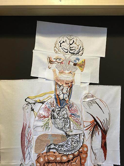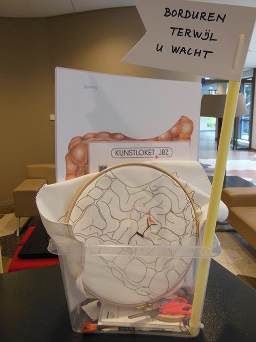 Voor ‘Borduurwerk’ hebben de kunstenaars bij diverse poliklinieken illustraties van lichaamsdelen en organen uit een medische encyclopedie op borduurlinnen laten borduren. De patiënten werkten zo mee aan een totaalbeeld van het menselijk lichaam, dat een plek kreeg op een verpleegafdeling.